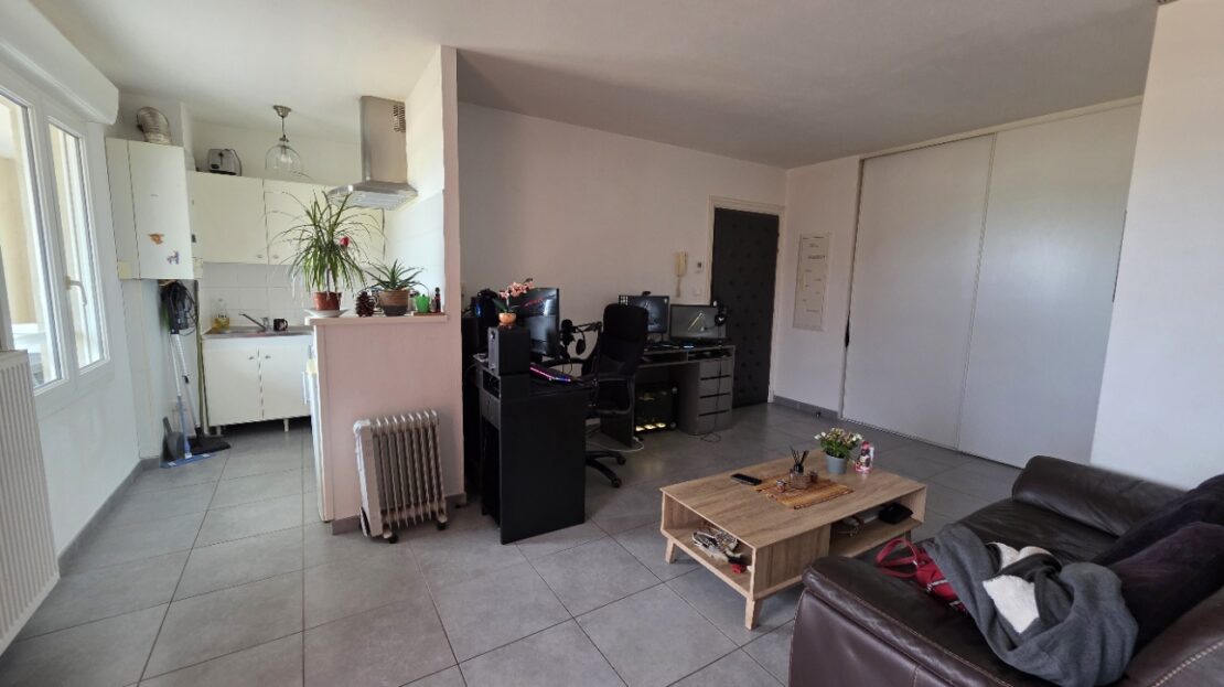 Dès l’entrée, l’appartement séduit par sa belle pièce de vie avec cuisine ouverte semi-équipée, un espace bien pensé, facile à aménager et suffisamment harmonieux pour qu’on s’y projette en quelques secondes seulement.