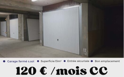 A louer, Résidence les Vallons du Macchione, un garage en sous-sol d’une superficie de 13m². Le garage est fermé et l’ accès au sous-sol est égaleme